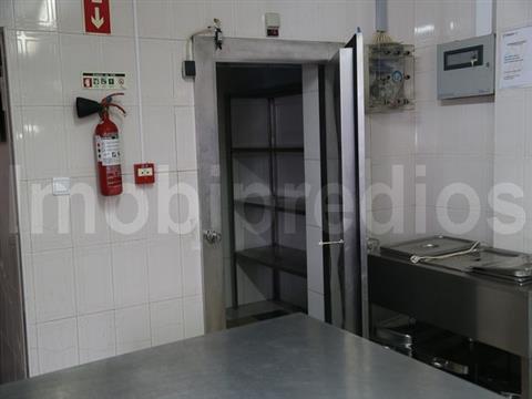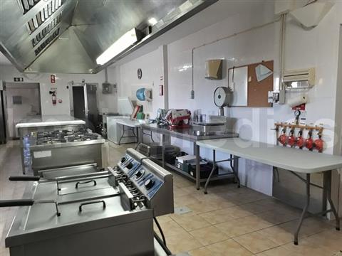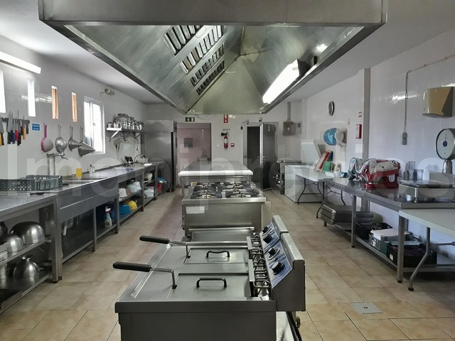Na área técnica, a cozinha está totalmente equipada e pronta a funcionar, com zona de circulação bem dimensionada e com acessos práticos para a zona dos frios e armazém.